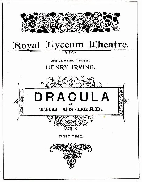 Program for the 1897 Lyceum Theatre stage production of Bram Stoker's Dracula, or The Undead