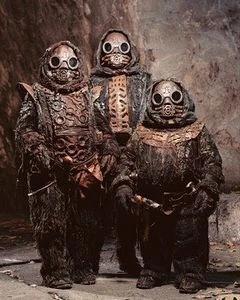 The appearance of these dwarves is particularly horrible. In spite of their small stature, they are malignant, and they have morbid and horrifying characteristics, like enormous eyes, gray skin, and sharp teeth, which they hide under black masks.