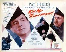 Kill Me Tomorrow is a 1957 British crime film directed by Terence Fisher. It stars Pat O'Brien and Lois Maxwell.[1] It was made by Tempean Films at Southall Studios in West London.
