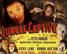The Jungle Captive is a 1945 sequel to Jungle Woman (1944), which had been preceded by Captive Wild Woman (1943). The Jungle Captive features Otto Kruger, Amelita Ward, and Rondo Hatton (as a character named "Moloch"). Vicky Lane plays Paula Dupree, a lead character from the two earlier films. The movie was written by Dwight V. Babcock and directed by Harold Young.