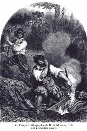 - "These vampires were corpses, who went out of their graves at night to suck the blood of the living, either at their throats or stomachs, after which they returned to their cemeteries. The persons so sucked waned, grew pale, and fell into consumption; while the sucking corpses grew fat, got rosy, and enjoyed an excellent appetite. It was in Poland, Hungary, Silesia, Moravia, Austria, and Lorraine, that the dead made this good cheer."